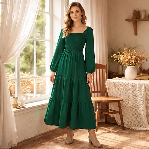 Medievale Rinascimento Lunghezza al pavimento Vestito Lunghe Gentildonna Linea ad A Collo quadrato Costume Per donna Fantasia Halloween Carnevale Fiera Rinascimentale LARP Festa a tema retrò Adulti