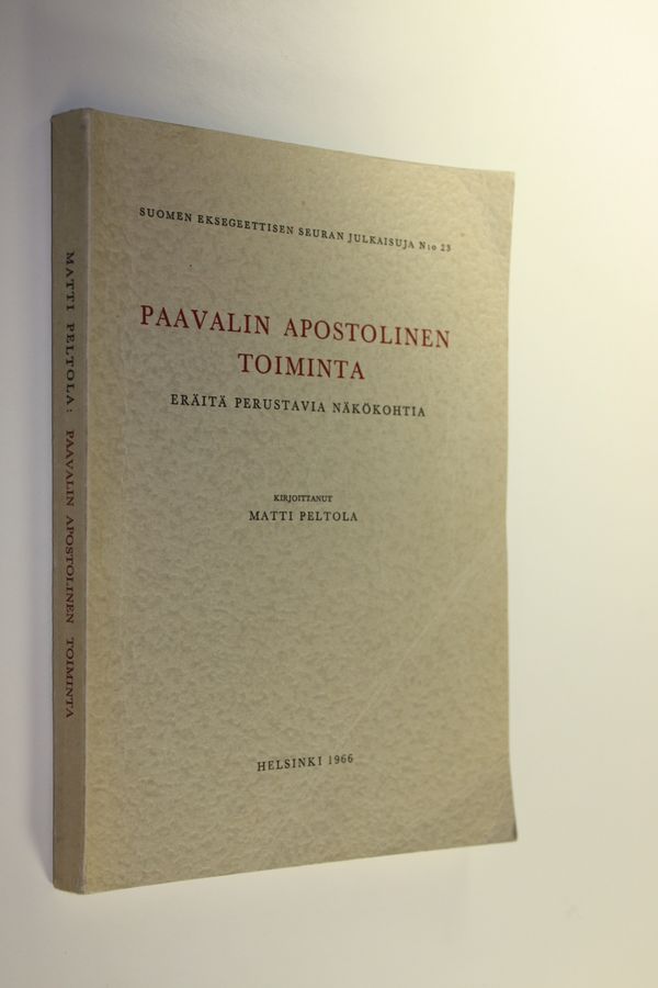 Matti Peltola : Paavalin apostolinen toiminta : eräitä perustavia näkökohtia = Die apostolische Wirksamkeit des Paulus : Einige grundlegende ...