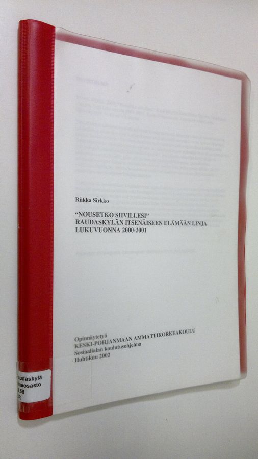 Riikka Sirkko : "Nousetko siivillesi" Raudaskylän itsenäiseen elämään linja lukuvuonna 2000-2001 (opinnäytetyö, sosiaalialan koulutusohjelma)