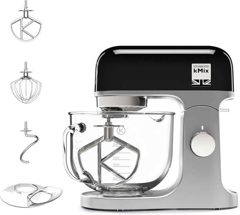 Kenwood Kmix Stand Mixer - 5L Capacity, Black, 1000W Motor, K-Beater, Balloon whisk and Dough Hook Included, Smart Spped Control, KMX754BK