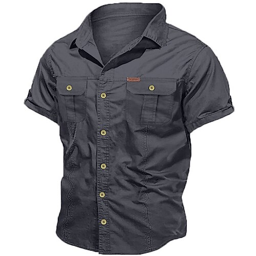 Herren Hemd Arbeitshemden Freizeithemd Arbeitshemd Knopfhemd Schwarz Blau Kaki Armeegrün Grau Kurzarm Einfach Revers Urlaub Ferien Tasche Bekleidung 100% Baumwolle Mode Lässig Bequem