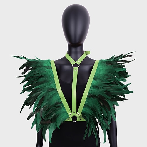 Accessori Samba Carnevale 2026 Rio Carnevale Mantello Stola Piume Verde e Nere Donna Costume per Festival in Brasile