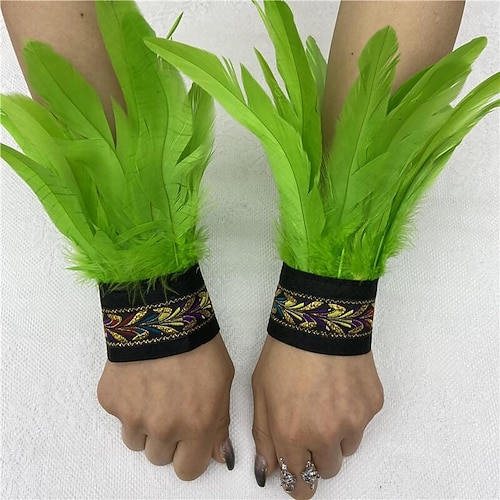 Accessori Samba Carnevale 2026 Rio Carnevale Polsini Piume Verdi Donna con Pizzo Bianco e Perle Costume per Festival in Brasile