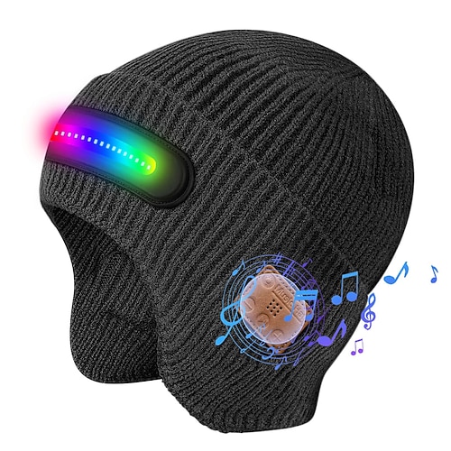 berretto bluetooth con luce, cuffie wireless unisex con led di sincronizzazione musicale, altoparlanti stereo hd integrati microfono, berretto in maglia lavabile per corsa, campeggio, sci, regali