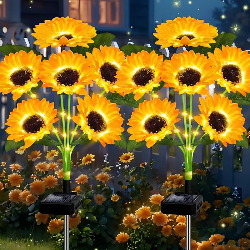 2Pcs LED Solar Outdoor Lights 6 Heads Sunflower Garden Lights Patio Lights Fairy Lights for Mattress Pillow Home Villa Yard Park Walkway Landscape Decoration