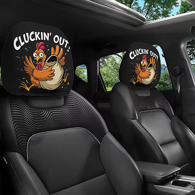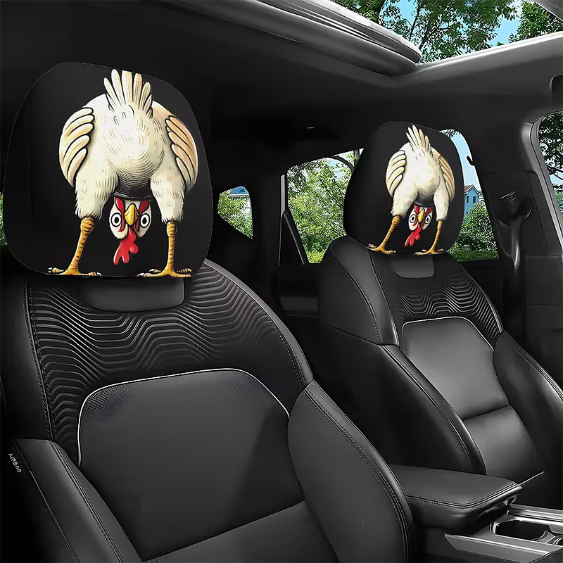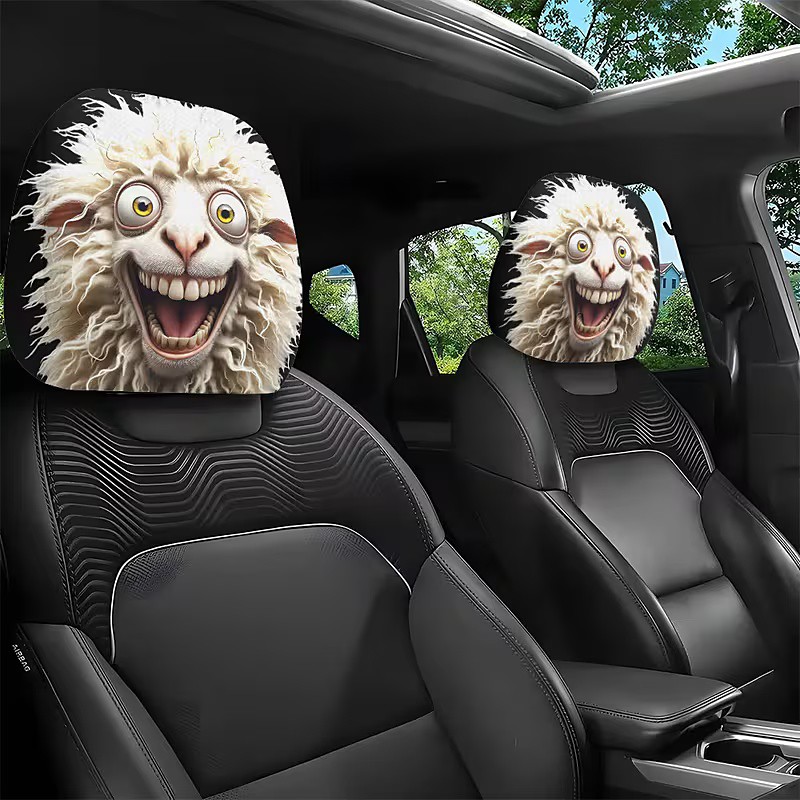 2pcs Surprised Expression Hat Printed Car Headrest Covers, Car Decor, No Filling, Easy to Install and Wash, Suitable for Long-Distance Travel to Relieve Fatigue, Perfect Funny Car Decor