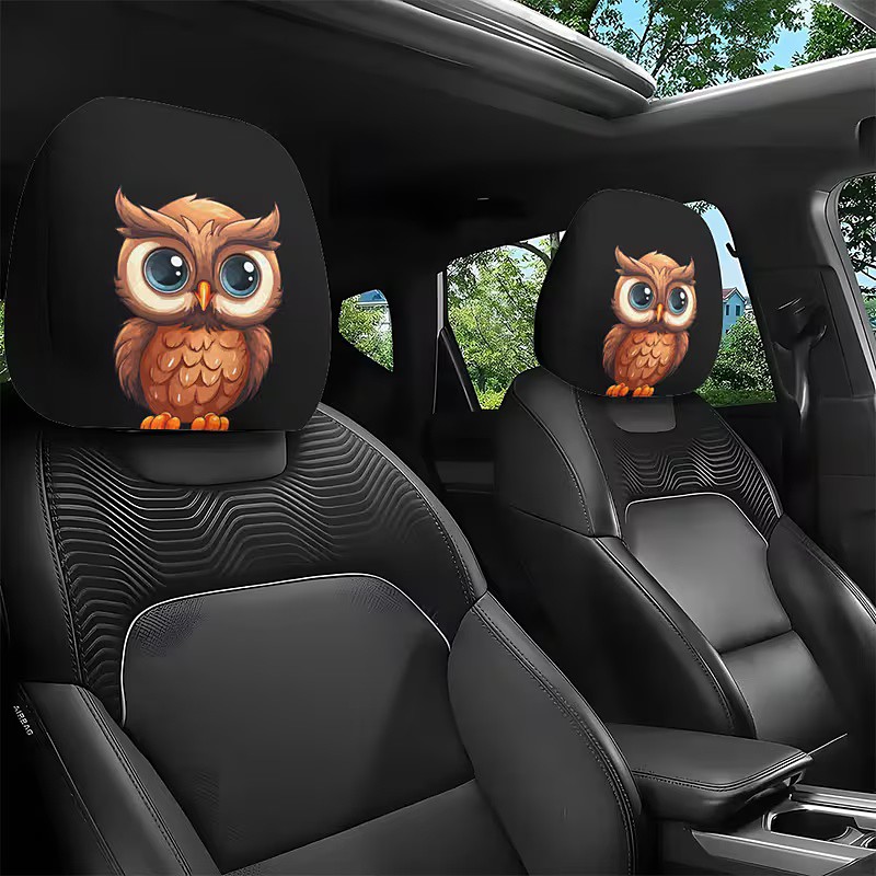 2pcs Cute Cartoon Animal Printed Car Headrest Covers, Unfilled, Automotive Interior Accessories, Universal Car Headrest Covers, Car Interior Decorations, Suitable for All-Weather Use Without Filling