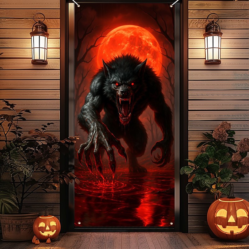 Halloween Door Cover – Evil Demon Emerging from Wooden Door, Haunted House Entrance Banner, Spooky Outdoor Indoor 2025 Halloween Decoration for Bedroom, Living Room, Bathroom
