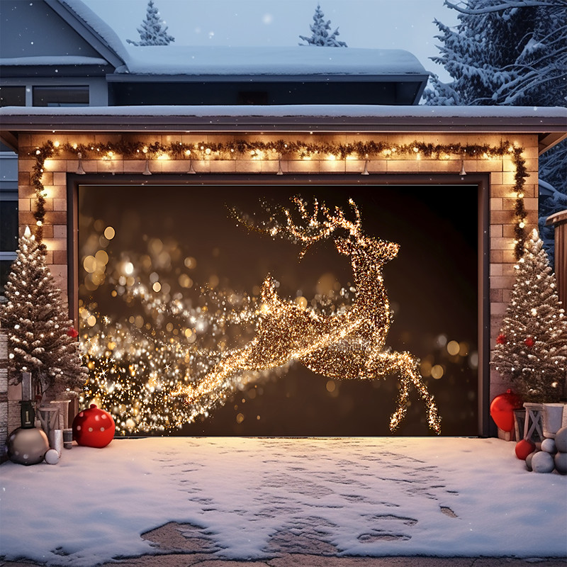 Christmas Tapestry Garage Door Cover Large Hanging Backdrop Moose Cute 3D Party Outdoor Holiday Shooting Backgrounds Yard Home Decor