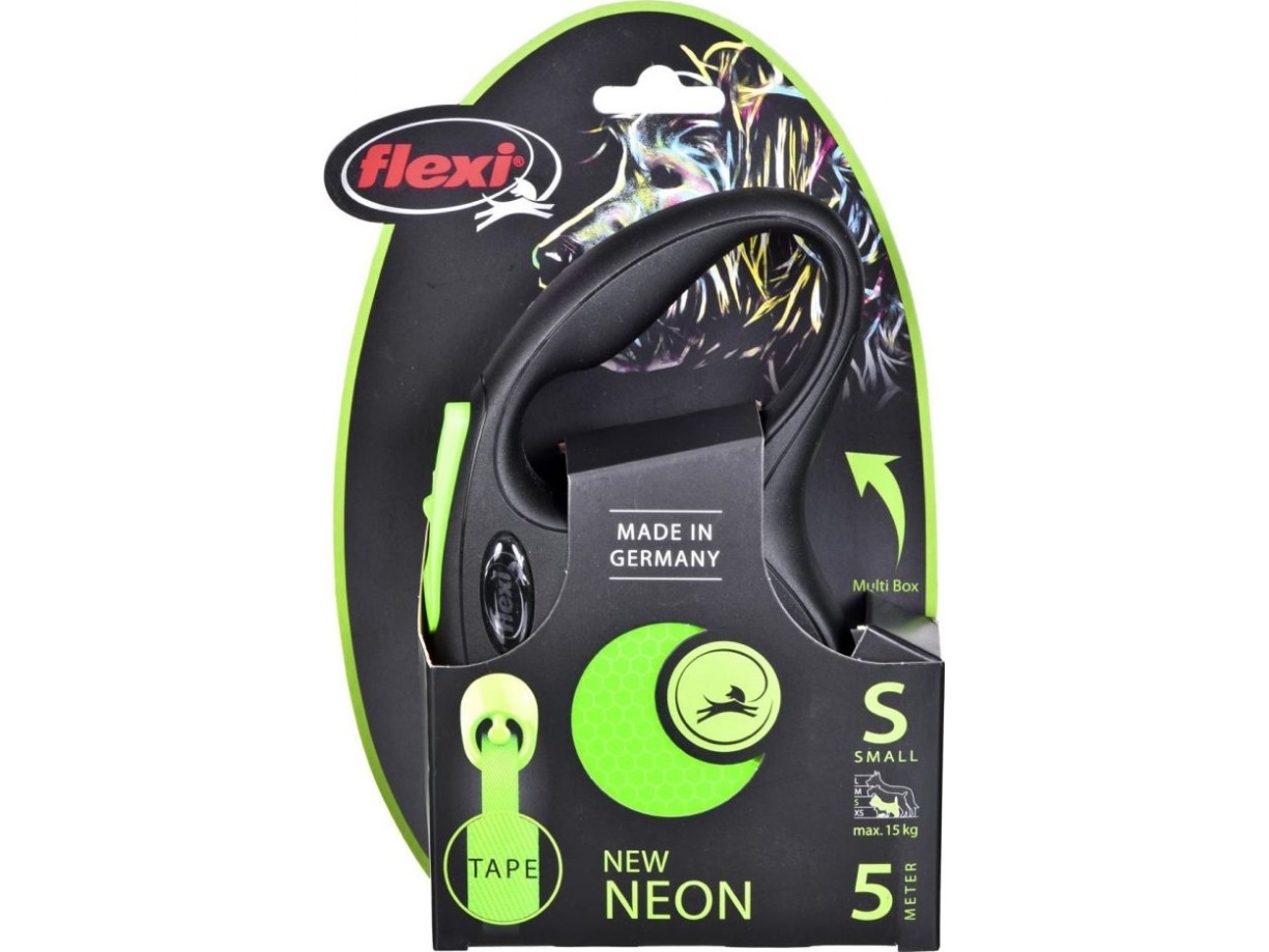 flexi New NEON bånd S, 5M, 15KG, black/neon grøn
