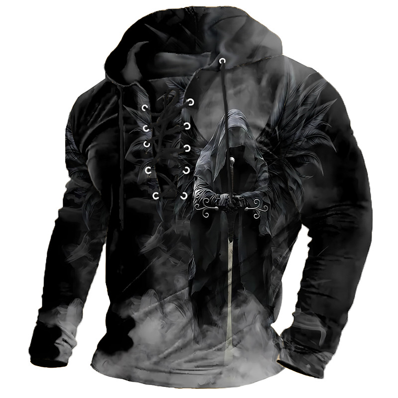 Men's Grim Reaper 3D Print Reaper Sweatshirt Punk Exaggerated Gothic Long Sleeve Crew Neck Hooded Club Streetwear Lake blue Black Red Green Drawstring Fall Winter Designer S M L XL XXL XXXL