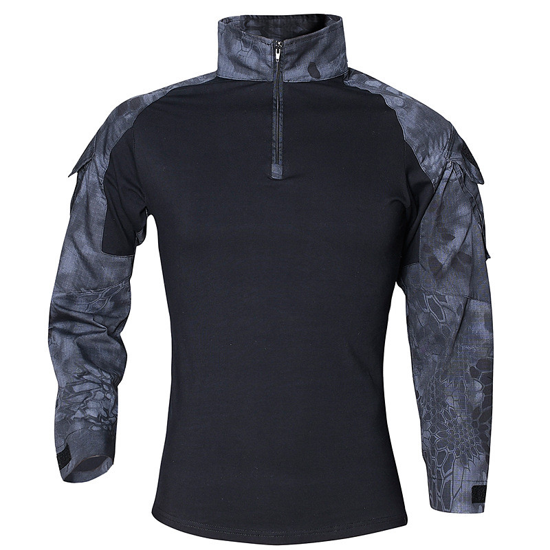 Men's Combat Shirt Tactical Military Shirt Long Sleeve Top Outdoor Breathable Quick Dry Multi Pockets Lightweight Summer Spring Polyester Police black python pattern Black Army Green Fishing Climbing