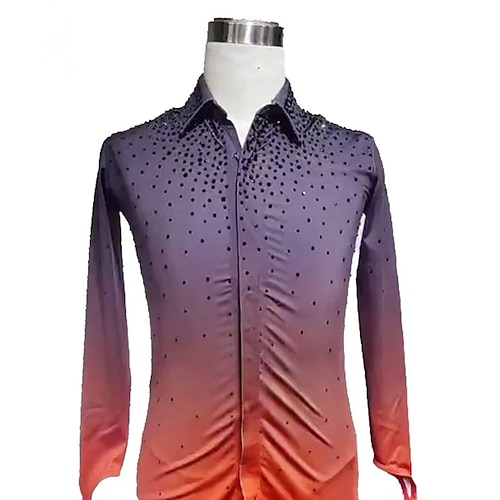 Maglia da pattinaggio artistico Per uomo Ragazzi Pattinaggio sul ghiaccio Top Arancione Patchwork Foro per il pollice Spandex Alta elasticità Allenamento Competizione Vestiti da pattinaggio sul