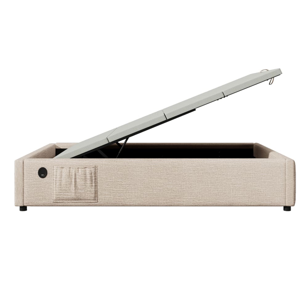 Letto per bambini in lino, beige+naturale 90x190 cm con porta USB-C