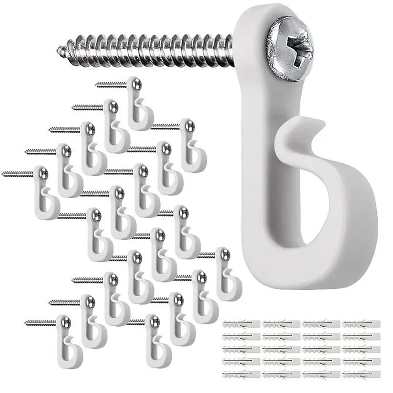20pcs Plastic Light Safety Hook Set - Versatile Hanging Solution for Indoor and Outdoor Use, Includes 20 Hooks, 20 Screws, 20 Tubes, Outdoor Wall Hooks for Halloween, Christmas Parties, Hanging Plants
