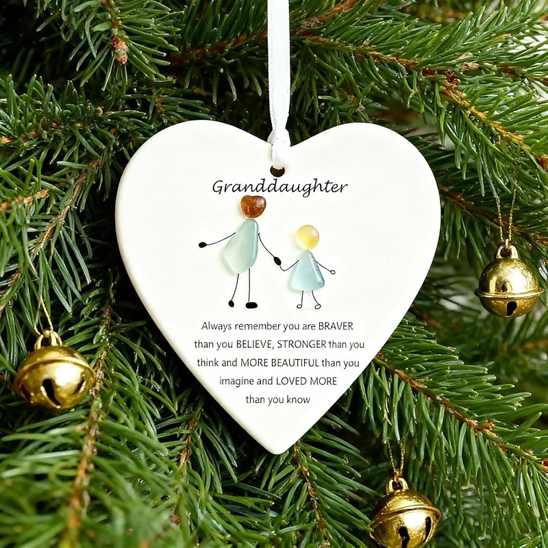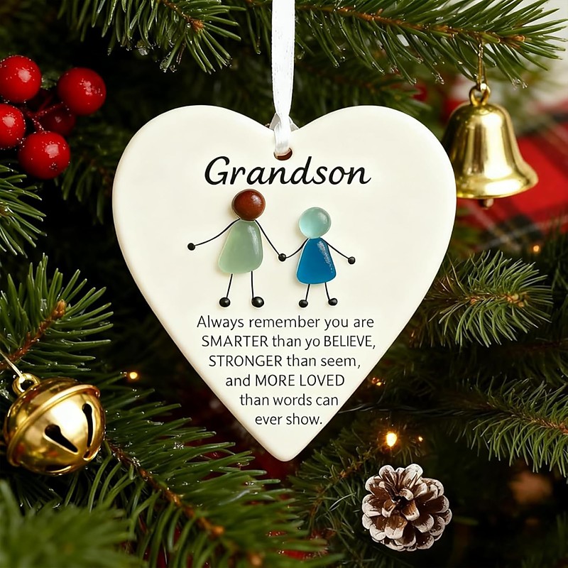 To My Granddaughter/Grandson Sea Glass Heart Ornament, Granddaughter Gifts from Grandma, Handcrafted Sea Glass Art Ornaments, Personalized Decorations, Unique Gift of Love from Grandma or Grandpa