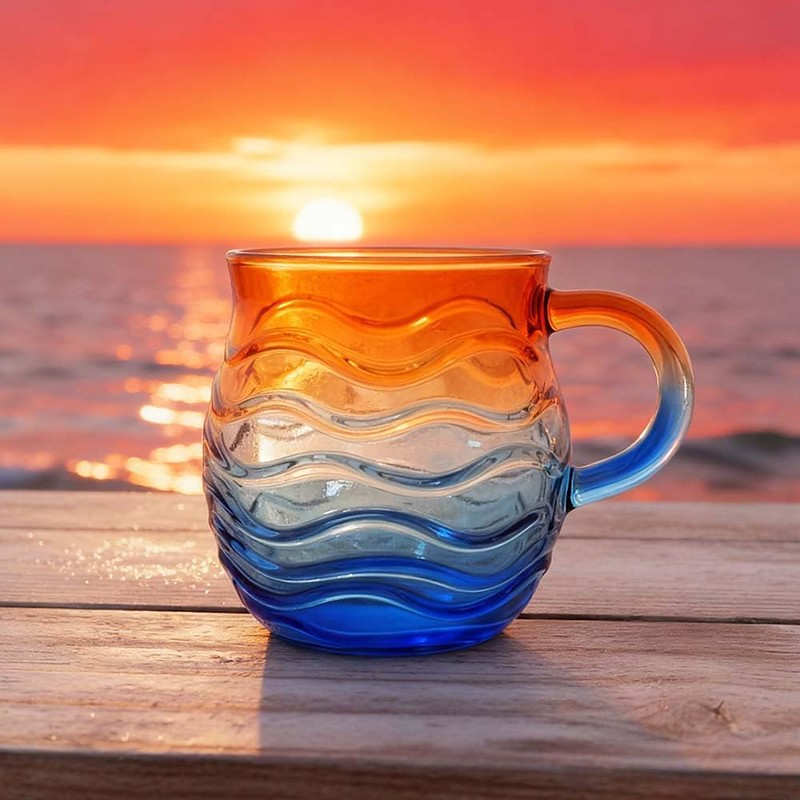 Sea Glass Sundown Mug 12 Oz, Handcrafted Ocean Wave Pattern Coastal Beach Themed Mug, Unique Textured Artistic Drinkware for Coffee Tea Gift for Ocean Beach Surf Lovers