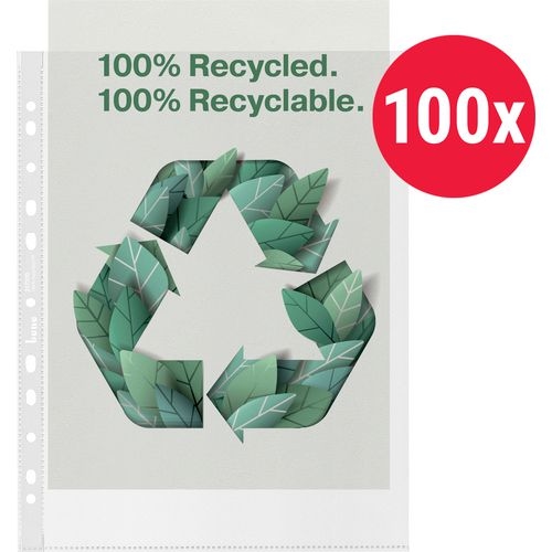 Bene Prospekthüllen 100% Recycelt DIN A4 Genarbt Transparent 70 Mikron PP (Polypropylen) 11 Löcher 217370 100 Stück