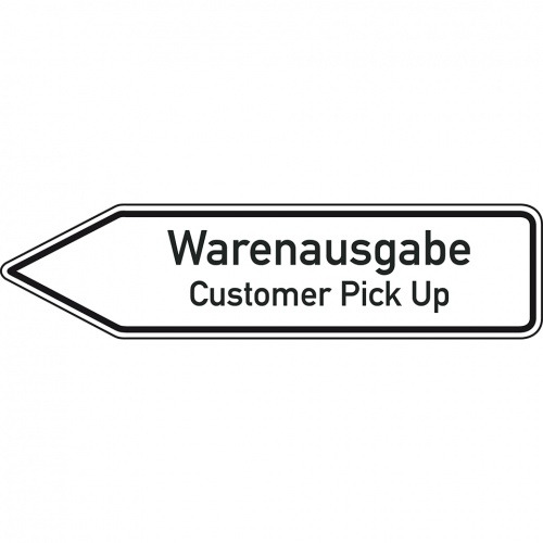 Wegw.2-spr.Warenausgabe, linksweisend, Aluminium RA0, reflektierend, 1400x350mm, DIN 67520