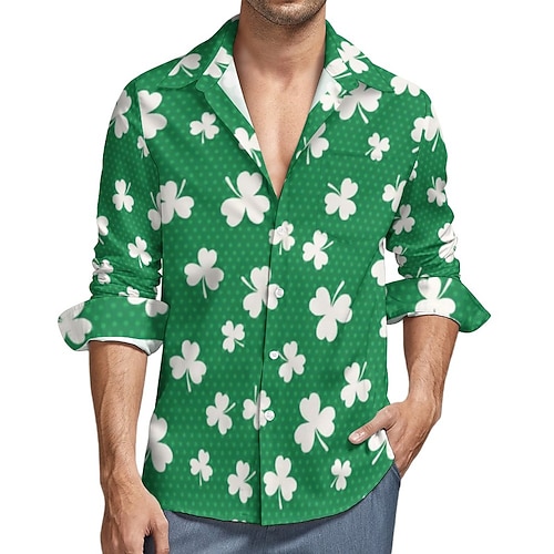 San Patrizio Per uomo Quadrifoglio Giorno di San Patrizio Polo Manica Lunga Magliette polo Collo ripiegato Casual Vacanza Giorno di San Patrizio Ferie Festival 3D Stampato Primavera Estate Bianco