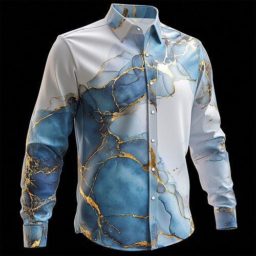 Per uomo Marmo Arte liquida astratta Camicia Camicia con Bottoni Manica Lunga Moda Casual All'aperto Abbigliamento Quotidiano Primavera Autunno Collo ripiegato Stampa 3D Camicia tipo lino BluCachi