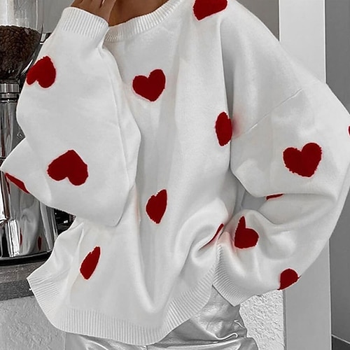 Per donna Felpa pullover Pullover Maglione Moda Manica Lunga Top Athleisure Inverno Cuore Escursionismo Vacanze Corsa abbigliamento sportivo Abbigliamento sportivo Bianco Grigio