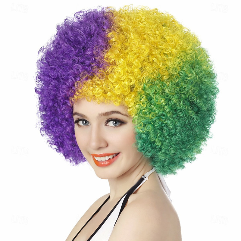 Carnival Wig Purple Green Yellow Afro Afro Curly Short Synthetic Festival Wig Mardi Gras Parade Cosplay Costume Hair for Women