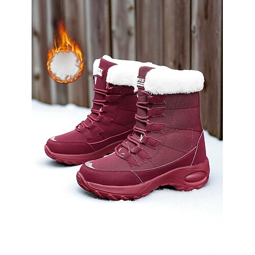 Scarpe invernali slip-on impermeabili bordeaux da donna – calde pantofole antiscivolo foderate in pelliccia per giornate nevose, commissioni all'aperto e abbigliamento casual quotidiano