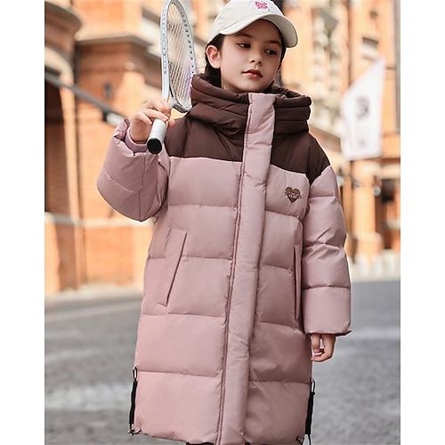 Bambini Ragazze Giacca in piuma Giacca Imbottita Tinta unica Sport Tasca Impermeabile Tenere al caldo Antivento All'aperto Cappotto Capispalla 5-12 anni Inverno Nero Rosa Cachi