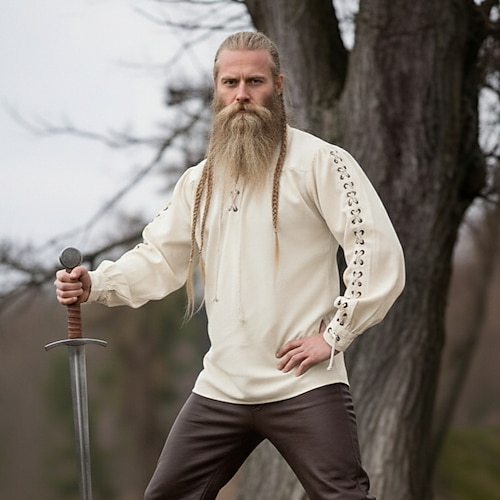 Krieger Plus Size Punk Gothic Mittelalter Renaissance 17. Jahrhundert T-Shirt Herrenkostüm Vintage Cosplay Party Langarmshirt