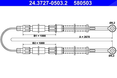 Ate Seilzug, Feststellbremse [Hersteller-Nr. 24.3727-0503.2] für Autobianchi, Lancia, Seat, Fiat