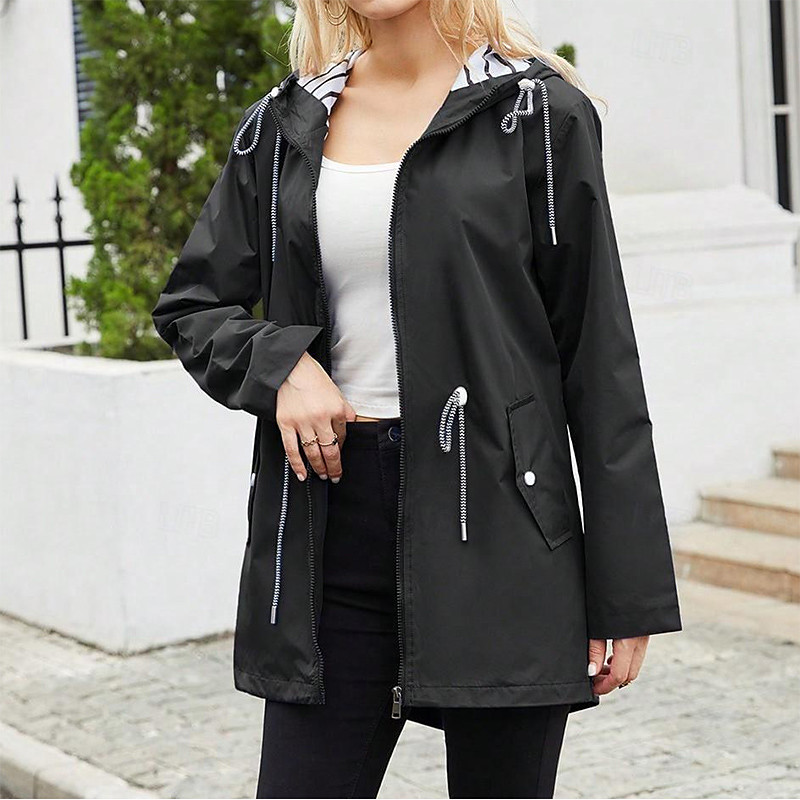 Women's Hiking Jacket Rain Coat Outdoor Waterproof Windproof Hiking Outfits Hiking Clothes Spring Autumn / Fall Top Camping / Hiking / Caving Running Solid Color Black Blue Dark Blue