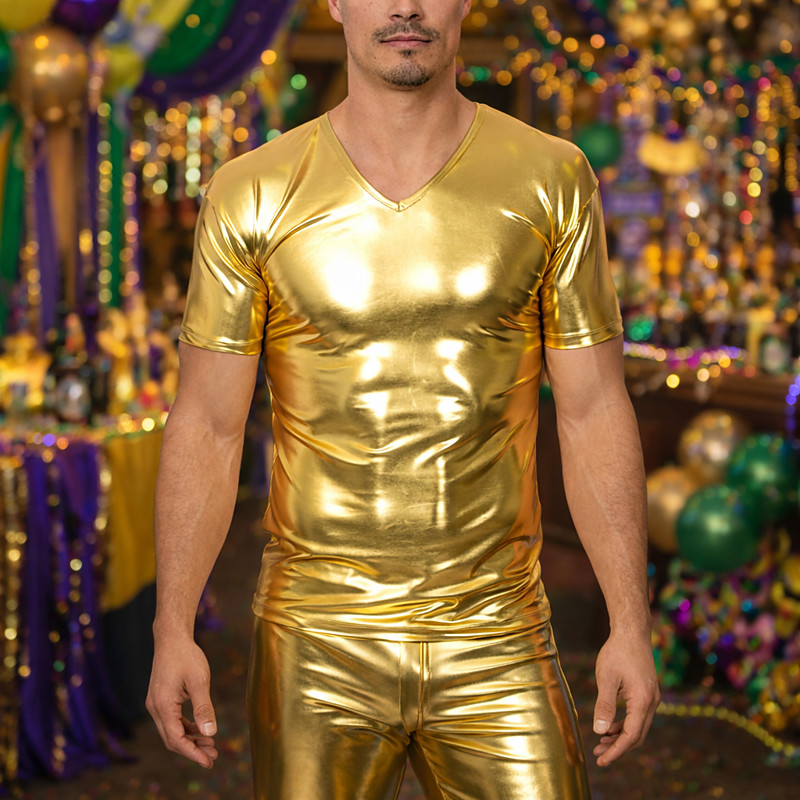 Mardi Gras 2026 Retro Vintage 1980s T-shirt Disco Shiny Latex Patent Metallic Fancy Dress Men's Halloween Carnival Pride Parade Pride Month Adults' T-shirt Summer
