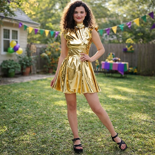 1980s Hip Hop Shiny Metallic Dress Disco Fancy Dress Women's Carnival Costume Halloween Carnival Mardi Gras Performance Party Pride Parade Adults' Dress