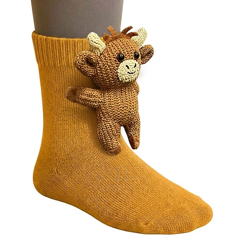 Calzini natalizi in maglia 3D con animali / calzini divertenti natalizi / calzini invernali in cotone / calzini da ciclismo termici caldi antivento 1 paio in poliestere con animali bianco giallo rosa taglia unica