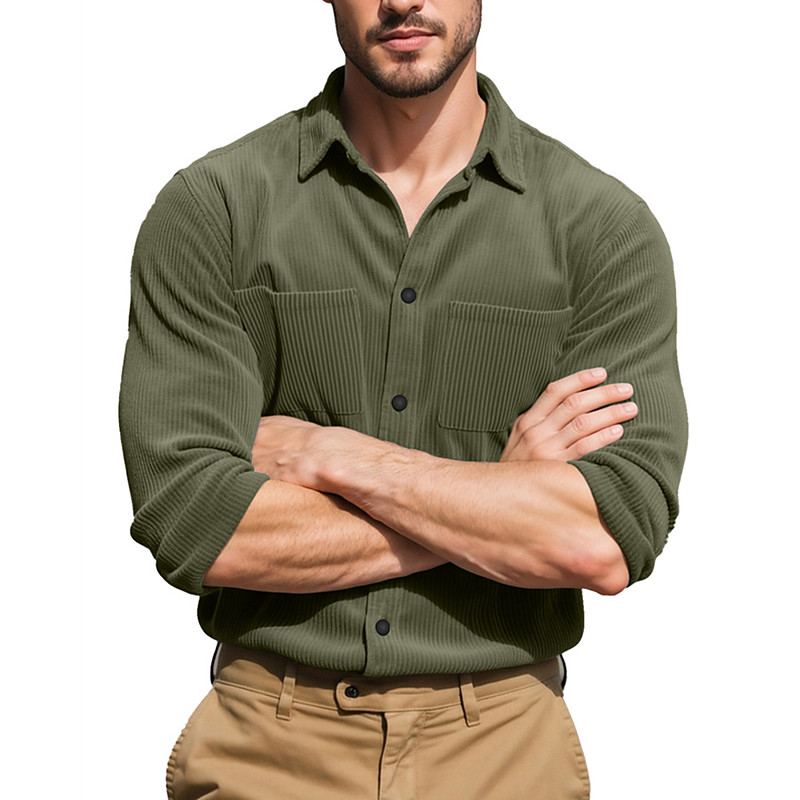 Men's Shirt Summer Shirt Casual Shirt Corduroy Shirt Button Up Shirt Black Navy Blue Camel Army Green Gray Long Sleeve Plain Lapel Vacation Hawaiian Pocket Clothing Apparel Polyester Fashion Casual