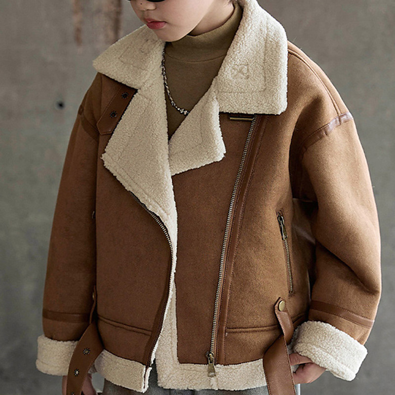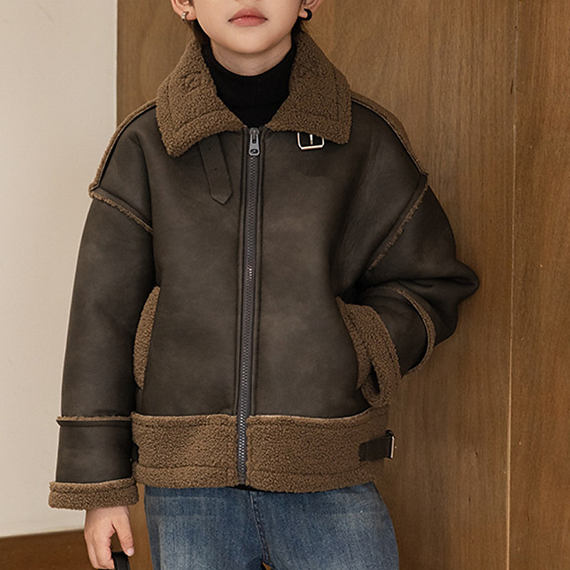 Kid's Boys' Faux Suede Jacket Fleece Jacket Jacket Outerwear Plain Long Sleeve Zip Up Keep Warm Windproof Coat Daily Fashion Casual Camel Brown Fall Winter 4-12 Years