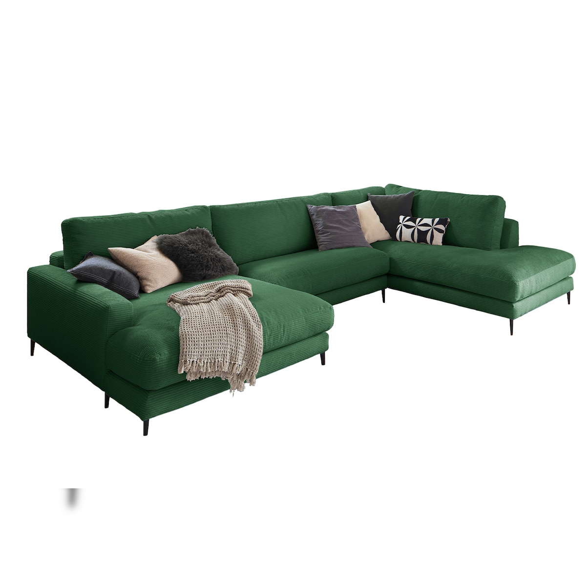 KAWOLA Sofa CARA Wohnlandschaft U-Form Cord smaragd Longchair links