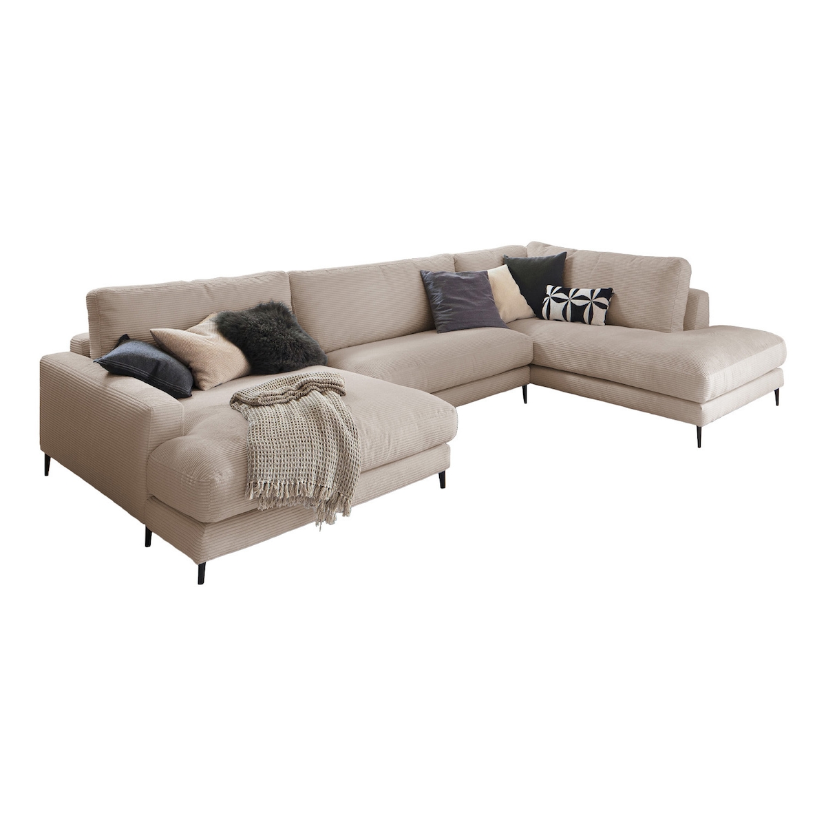 KAWOLA Sofa CARA Wohnlandschaft U-Form Cord taupe Longchair links