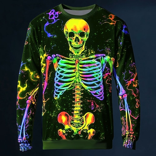 Felpa con teschio da uomo set 2 pezzi punk festa maniche lunghe crewneck vacanza gialla blu felpa 3D per tutte le stagioni designer