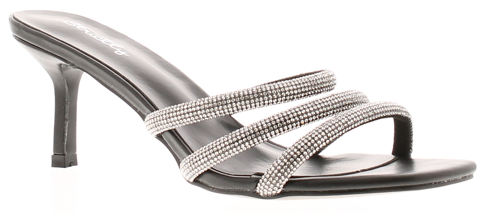 Wynsors Womens Heeled Mule Sandals Diamante Mia Slip On Black - Size UK 6 | Wynsors Sale | Discount Designer Brands