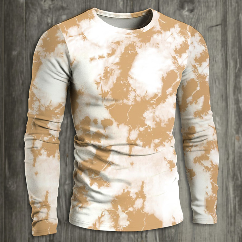 Men Blue Sky White Clouds Pattern Long Sleeve T Shirt 3D Printed Tie Dye Graphic Casual Holiday Beach Style Crew Neck Pullover Tops Clothing Apparel S M L XL XXL XXXL