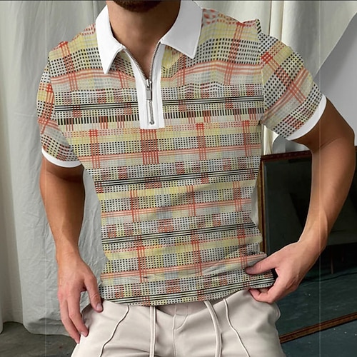 Per uomo Grafico Polo con zip Manica Corta Collo ripiegato Casual Quotidiano Athleisure Casual Quotidiano Cerniera Estate Nero Verde Marrone