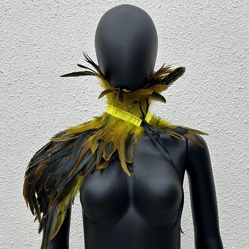 Women's White Feather Cape Shawl with High Collar, Gothic Angel Costume Accessories, Snow Queen Ice Witch Cosplay Shrug