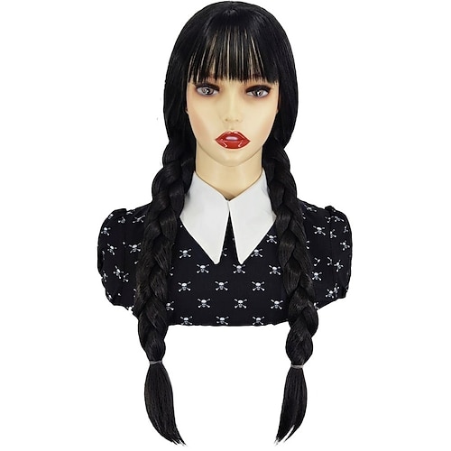 Parrucche Cosplay Nero Liscio Capelli Sintetici Lungo Parrucche Per donna Parrucche Per la festa