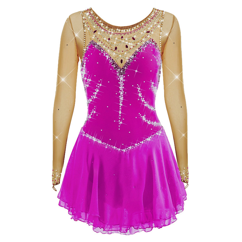 Figure Skating Dress Women's Girls' Ice Skating Dress Black Purple Rosy Pink Spandex High Elasticity Training Competition Skating Wear Handmade Crystal / Rhinestone Long Sleeve Ice Skating Figure