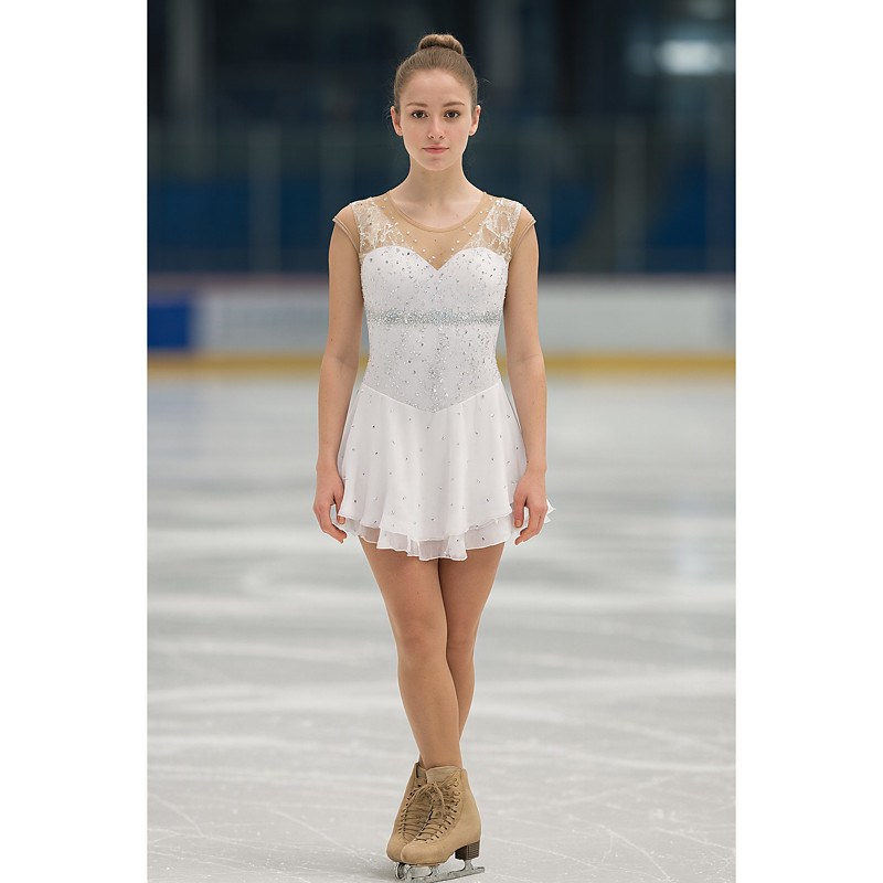 Figure Skating Dress Women's Girls' Ice Skating Dress White Patchwork Asymmetric Hem Spandex High Elasticity Training Professional Competition Skating Wear Classic Crystal / Rhinestone Sleeveless Ice