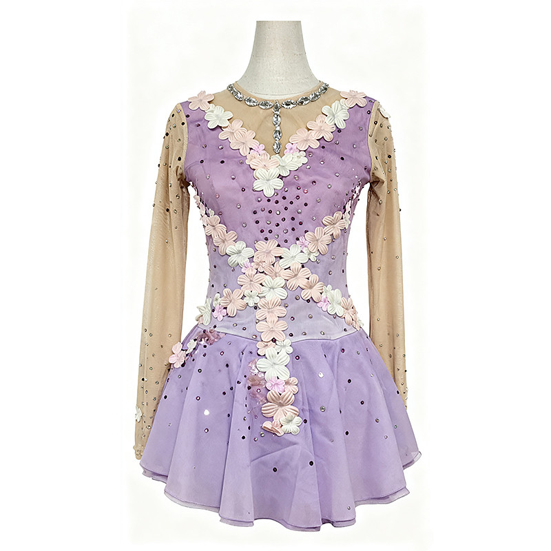 Figure Skating Dress Women's Girls' Ice Skating Dress Light Purple Patchwork Mesh High Elasticity Training Competition Skating Wear Classic Crystal / Rhinestone Long Sleeve Ice Skating Figure Skating