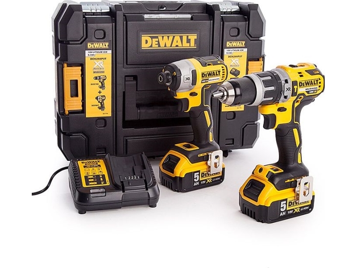 DEWALT akumuliatorinių įrankių rinkinys DCK266P2T 18V (DCD796 + DCF887) 2x5.0Ah, TSTAK II lagaminas