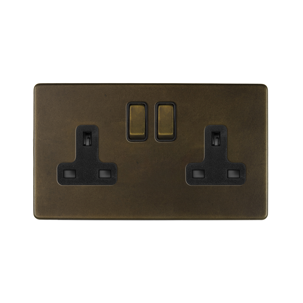 Soho Lighting Vintage Brass 2 Gang Double Pole Socket 13A